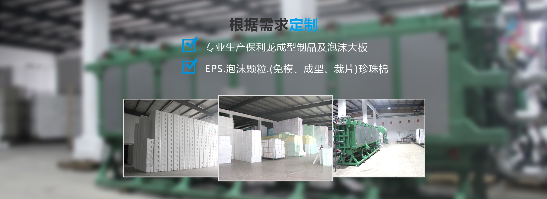 目前公司擁有19臺自動泡沫成型機,8臺免模板材機,1臺消失模大板機,公司生產的產品適用于:電子、陶瓷、燈具、工藝品、醫(yī)藥、五金工具、家具、儀器儀表、玻璃、水產品保鮮箱、水果保鮮箱、花卉盆景、外墻保溫、填充料等包裝制品。